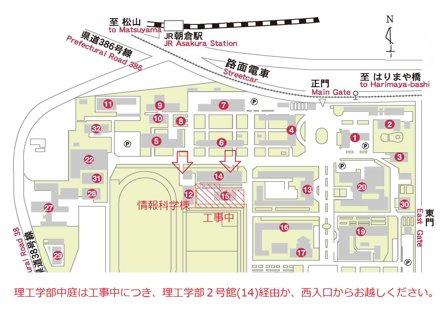 ... 理工学部中庭は工事中のため、地図にて進入路をご確認ください。
